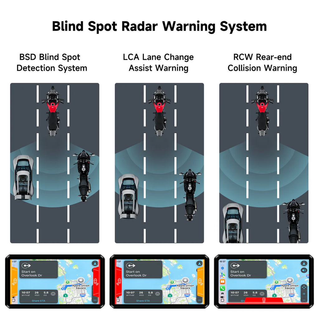 Comprehensive Blind Spot Detection and Safety Assurance-Equipped with 77G mm Wave radar, supporting BSD, LCA, and RCW blind spot warning systems. It continuously monitors rear and side blind spots, providing early warnings for approaching vehicles to ensure driving safety. Accurate detection and level-1 or level-2 alerts are provided in all conditions, including daytime, fog, and rain.