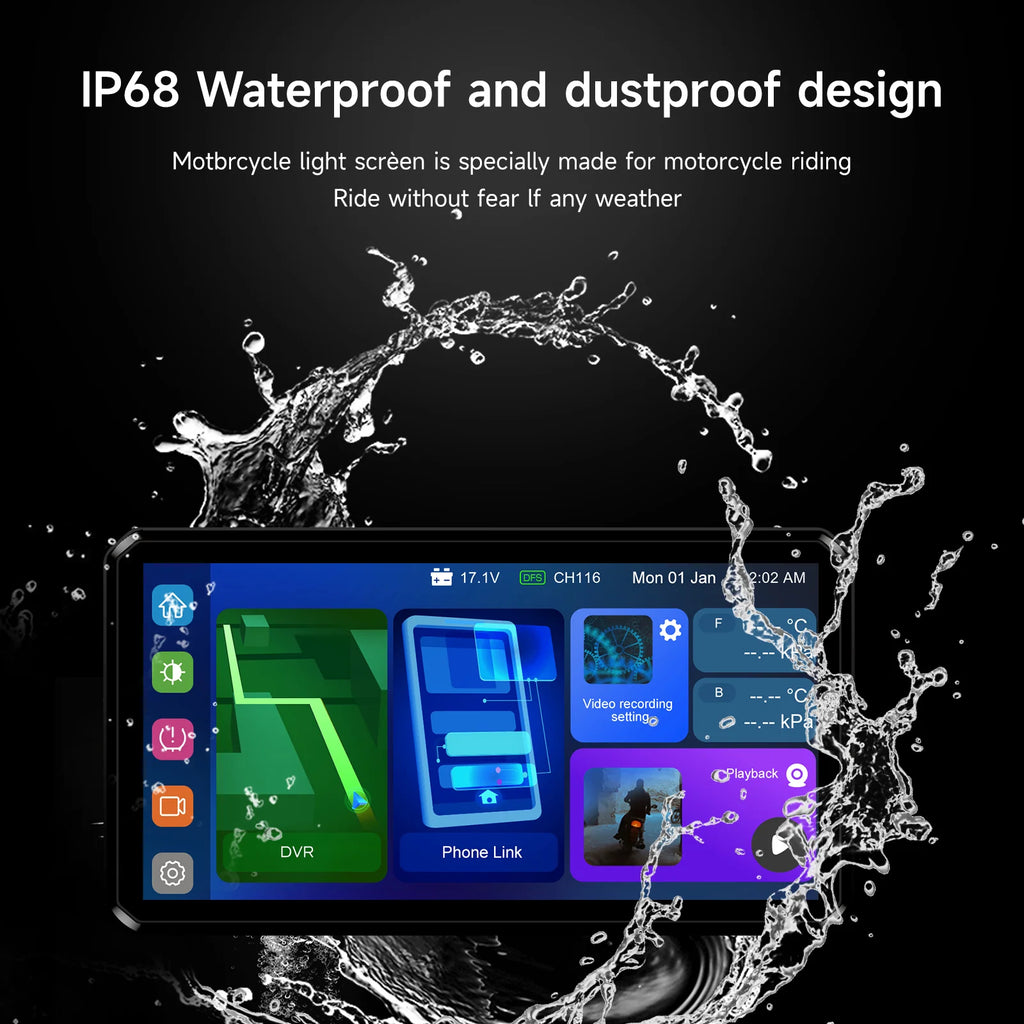 The AlienRider M2Promax Smart System combines advanced streaming technology with rugged reliability for serious riders. This 1080P display features a 1200-nit IPS touchscreen engineered for maximum visibility in bright sunlight, paired with full IP68 waterproofing to handle extreme weather and high temperatures. Wireless CarPlay and Android Auto integration deliver seamless navigation and device connectivity, while screen mirroring capabilities keep your route front and center. The system supports loop recording, video downloads, and dedicated emergency incident storage—essential for capturing critical moments. Built for riders who demand professional-grade performance and durability on every journey.