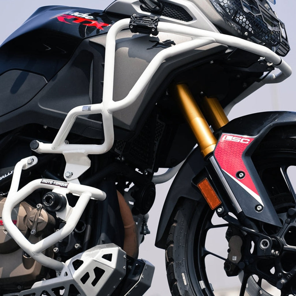 Built for rugged performance and Indian road conditions, this crash guard enhances both safety and aggressive adventure styling.