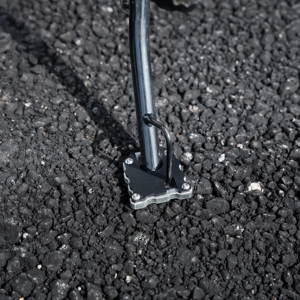 Protection: Prevents side stand slippage on soft surfaces