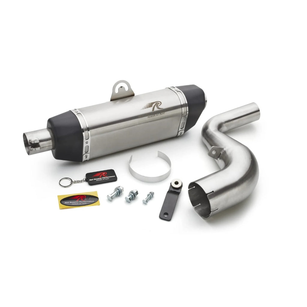 Unleash the beast within your KTM Duke 250 or Duke 390 with the Red Rooster Performance Galactic Matte Exhaust. Precision-engineered and paired with a custom bend pipe, this exhaust is designed to deliver a power-packed performance, lightweight handling, and a bold exhaust note that matches KTM’s aggressive DNA.