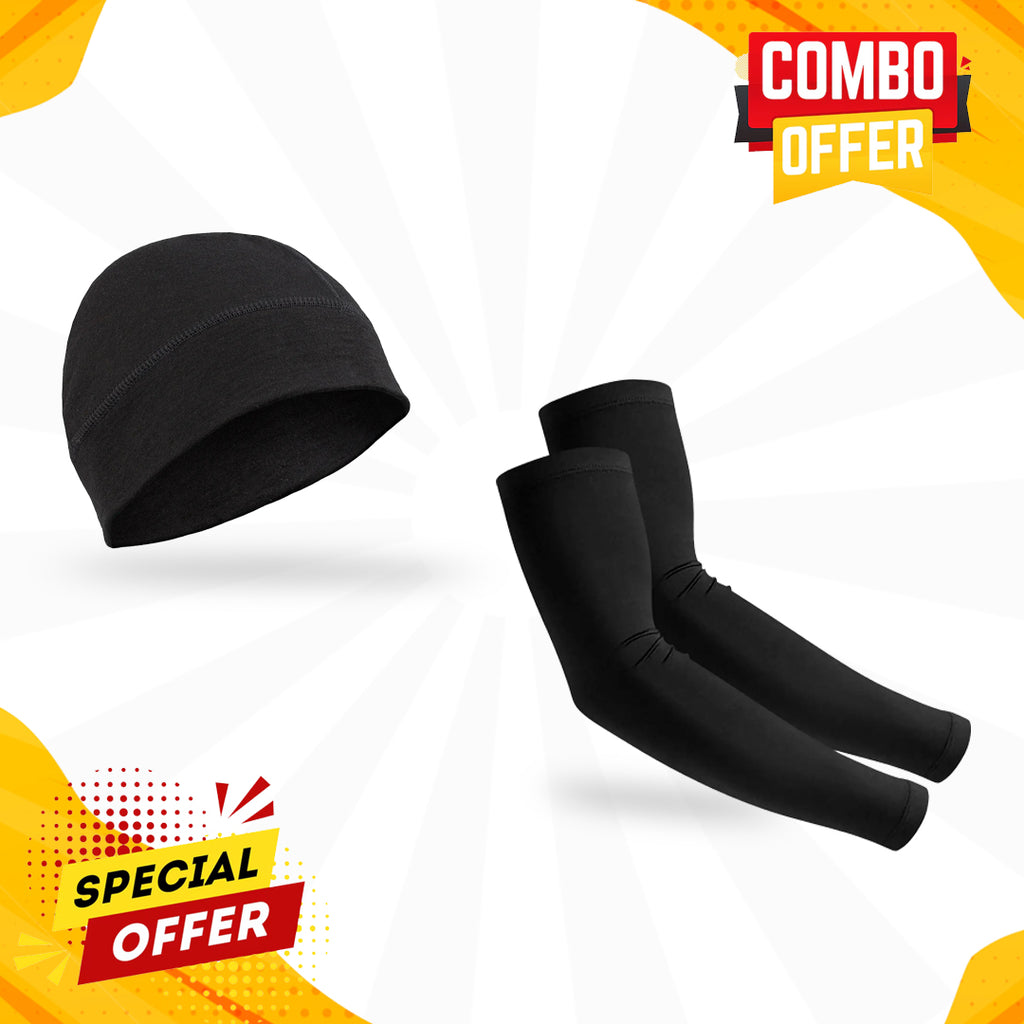 The breathable skull cap fits perfectly under helmets while absorbing sweat and reducing heat buildup. The compression arm sleeves enhance blood circulation, reduce muscle fatigue, and protect your arms from sun exposure, dust, and minor abrasions. Ideal for cycling, running, cricket, gym workouts, biking, and daily sports use.
